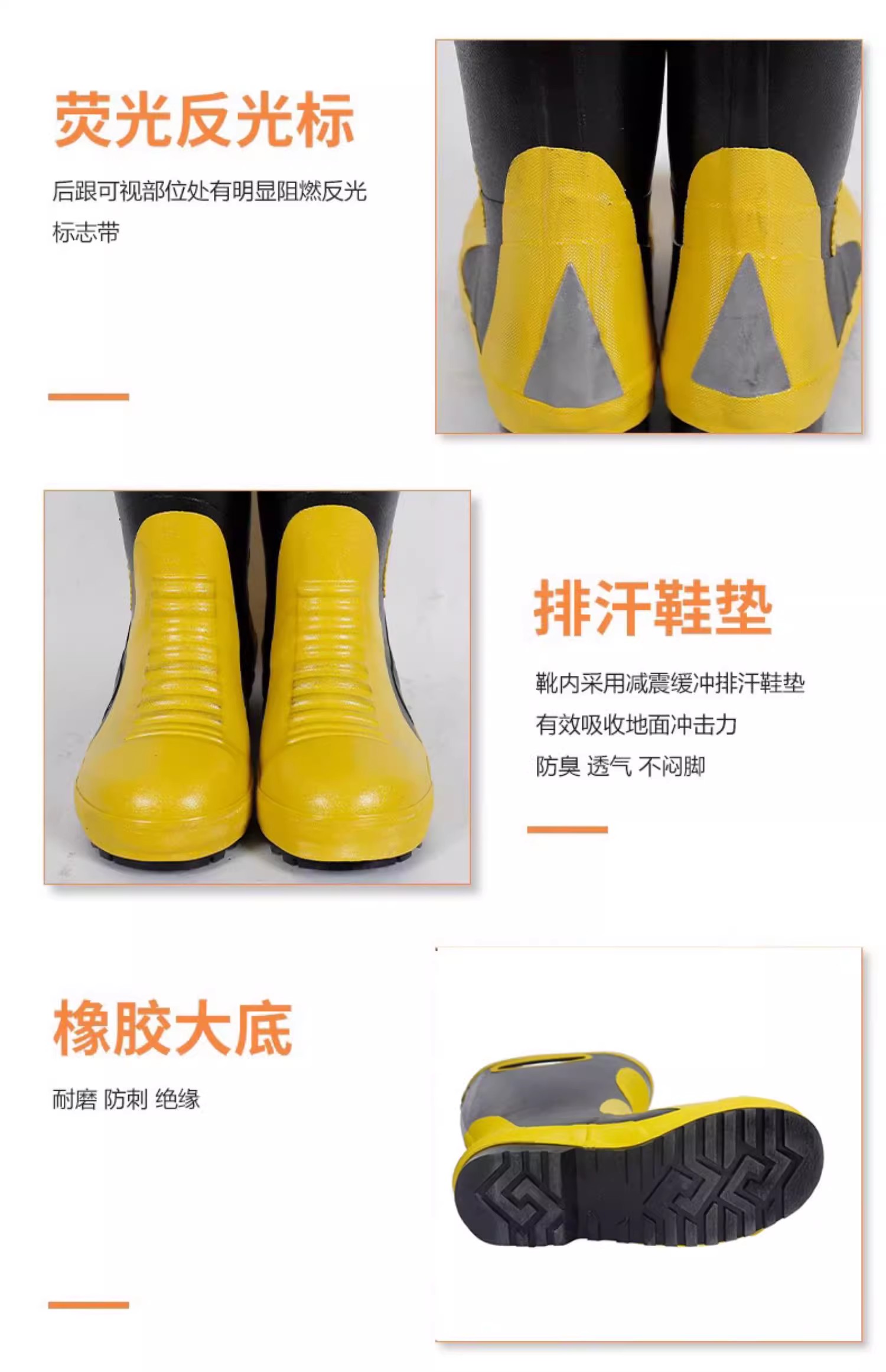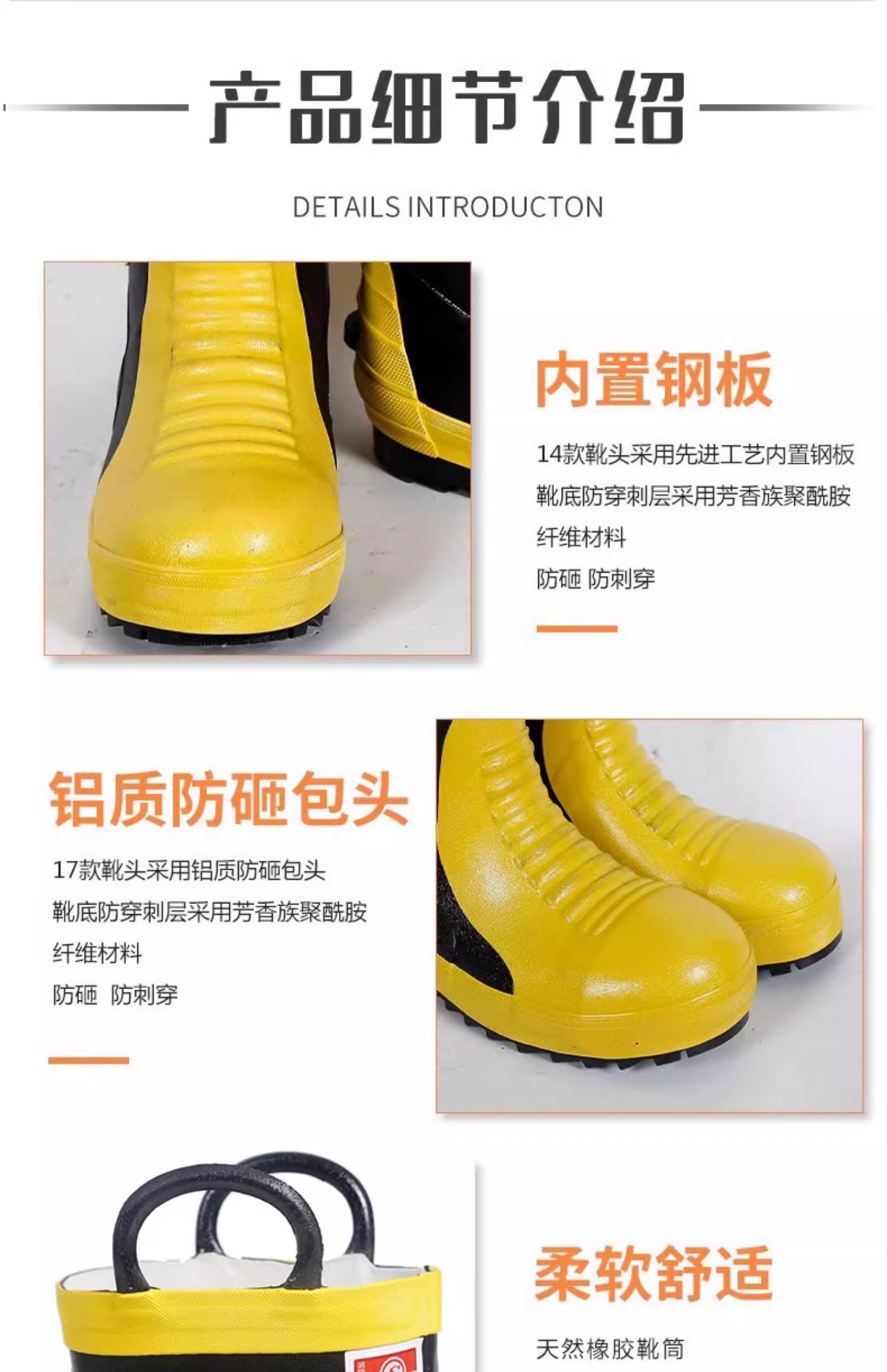 鴻寶滅火防護(hù)靴戰(zhàn)斗膠靴防砸防刺輕便防滑廠家直供